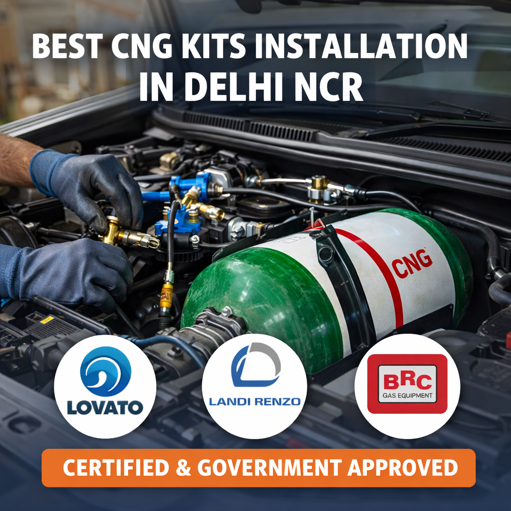 Looking for the best CNG kits installation in Delhi NCR? We provide certified, safe, and high-quality CNG kit installation services for all types of cars, ensuring excellent performance and fuel efficiency. With years of experience and a team of trained technicians, we specialize in installing government-approved CNG kits that meet all RTO and safety norms.